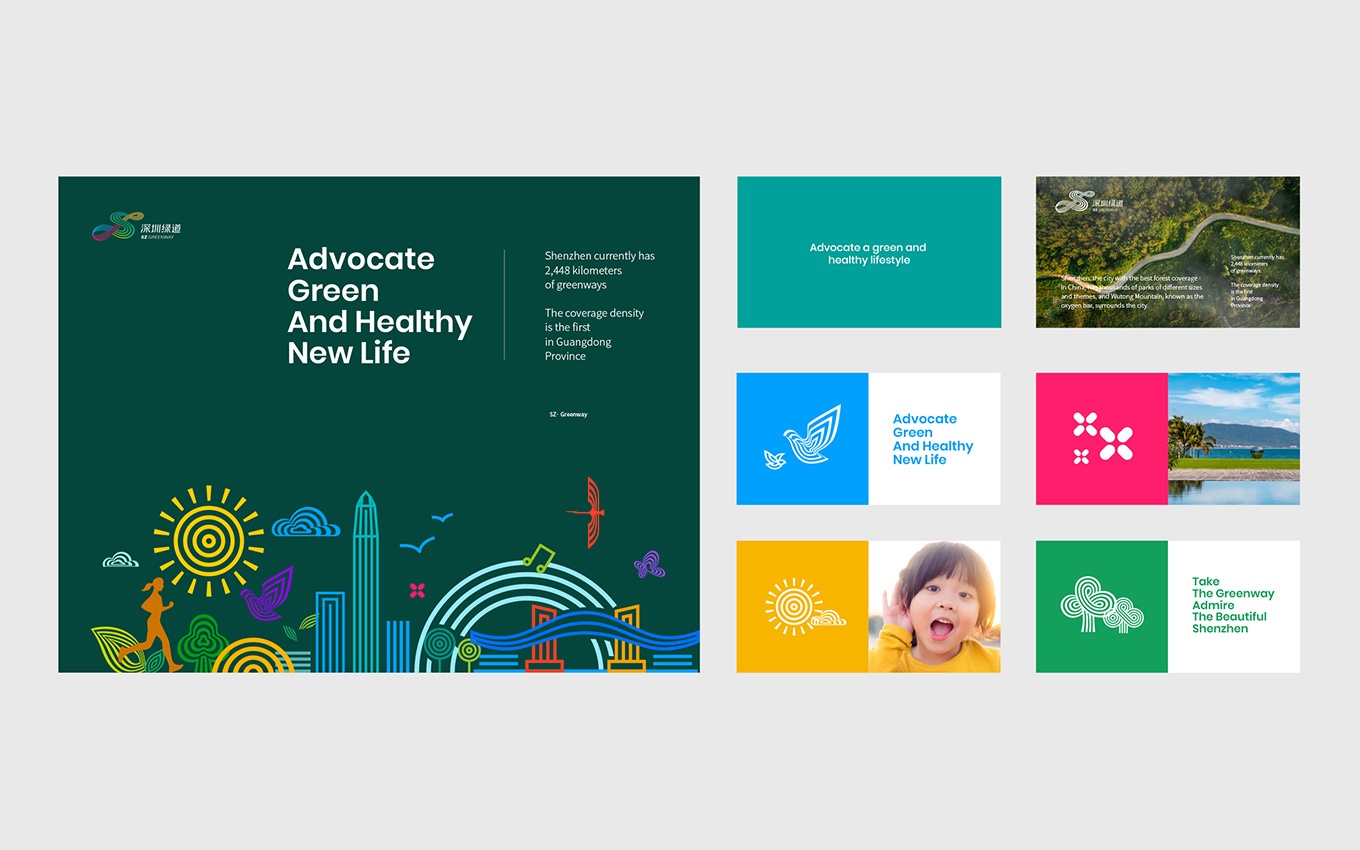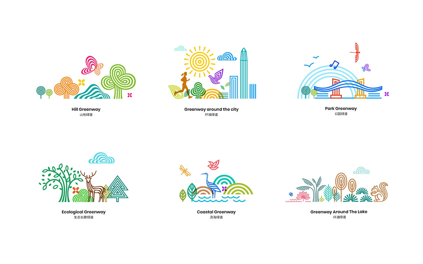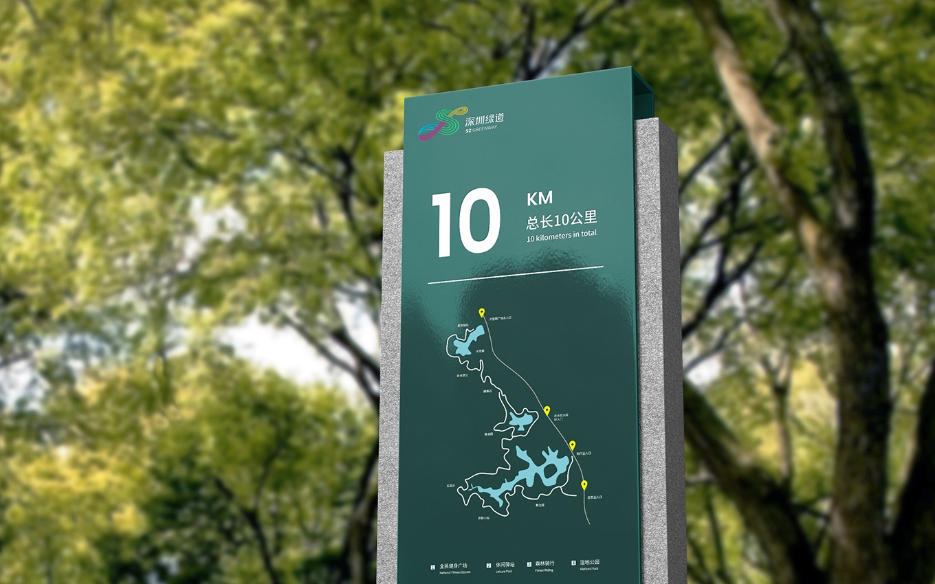 深圳通過十幾年的努力,堅持綠色低碳發(fā)展,建設(shè)了幾千公里的綠道。為了深圳綠道體系擁有統(tǒng)一的形象標(biāo)識,作為城市名片更好地推廣與建設(shè)生態(tài)文明城市和宜居城市,委托了深圳市聯(lián)合創(chuàng)智設(shè)計顧問有限公司進(jìn)行了logo設(shè)計、vi設(shè)計和標(biāo)識標(biāo)牌設(shè)計,深圳綠道視覺形象辨識度高,具有非常強(qiáng)的創(chuàng)新性和辨識度,能很好的代表著深圳年輕、活力、創(chuàng)新、國際化城市和設(shè)計之都的高度。